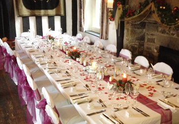 Our Tudor Dining Room holds up to 40 guests, or the Elizabethan Suite holds up to 110 guests. You will have a choice of a large range of Breakfast and Drinks Packages and we offer free function room hire and linen including chair covers.